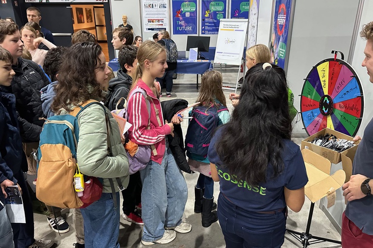 Ebenso herzlich danken wir den unglaublich vielen Schülerinnen, Schülern, Lehrkräften und Familien, die vorbeigeschaut, ausprobiert, gefragt und gestaunt haben. Ob beim Experimentieren oder am Glücksrad mit unserem Maskottchen Terry – fast 2.000 Stück haben neue glückliche Besitzer*innen gefunden – die Begeisterung war einfach ansteckend!